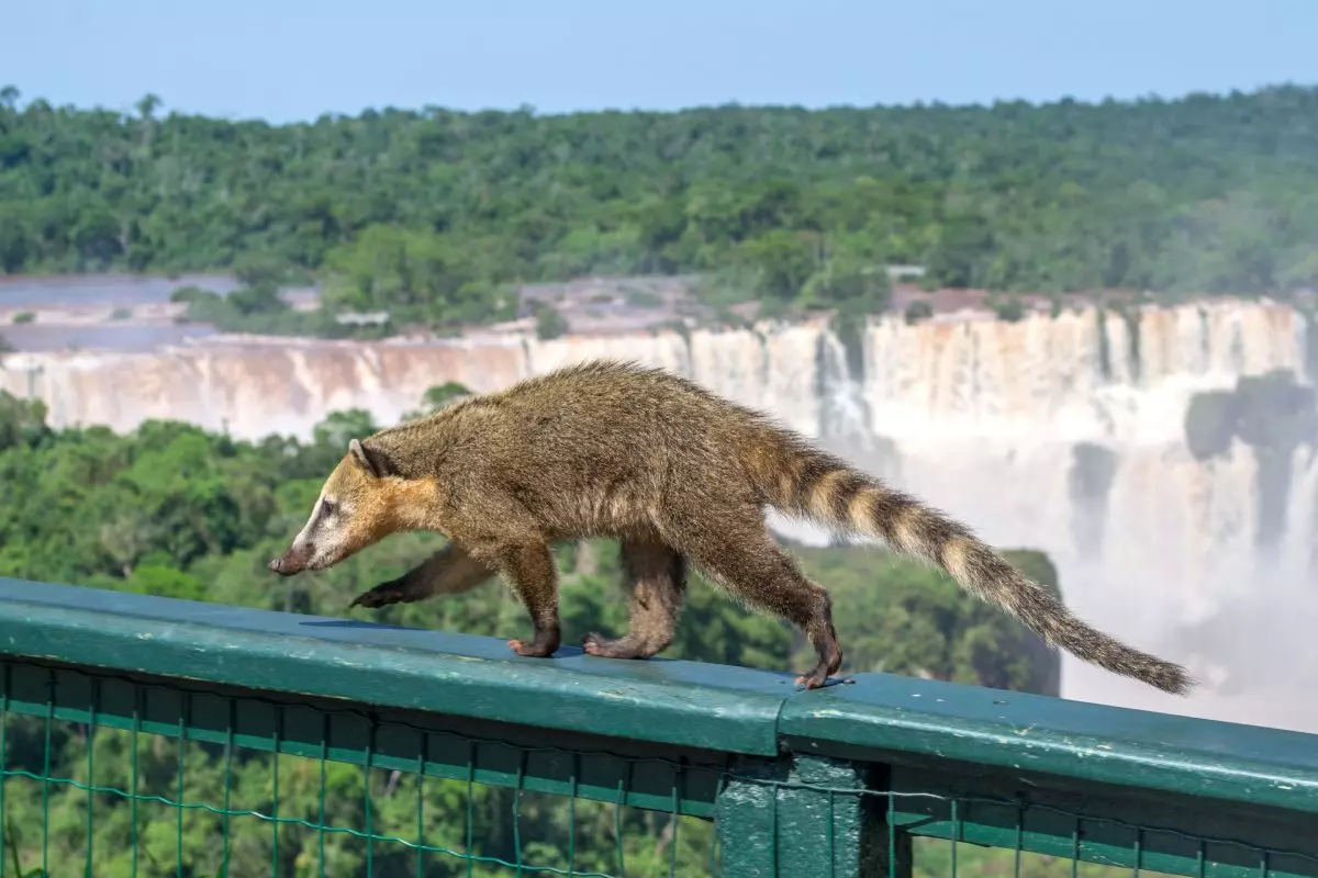 Auf diesem Ausflug müssen wir unsere Pässe dabei haben, weil wir die Grenze zwischen Argentinien und Brasilien überschreiten. Die meisten Wasserfälle befinden sich auf der argentinischen Seite, die beste Aussicht bekommt man jedoch auf der brasilianischen Seite. Sie sehen die Wasserfälle aus verschiedenen Winkeln, und mit einem Aufzug hat man Zugang zu einer Aussichtsplattform. Von hier aus bekommen Sie einen fantastischen Ausblick direkt hoch zum Rachen des Teufels, wo Sie vom Dunst des Wasserfalles eingehüllt werden. Auf den Gehwegen besteht auch die Chance, dass man kleine Nasenbären erblickt, die uns oft neugierig begleiten.
