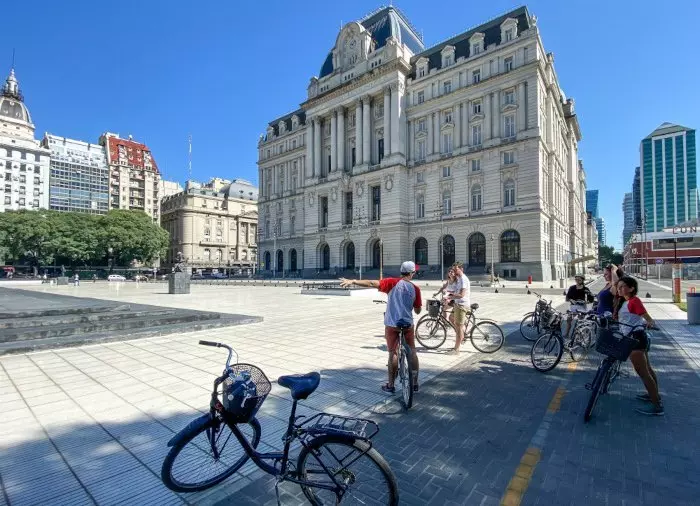 Schließlich wird am Plaza de Mayo angehalten, auf dem sich das spektakuläre hellrosa Regierungsgebäude befindet. Von dort geht es wieder zurück zum Ausgangspunkt, an dem die Fahrräder abgegeben werden.