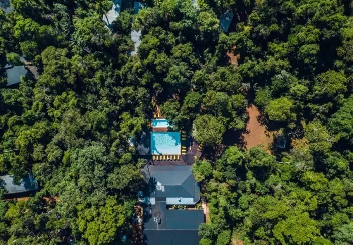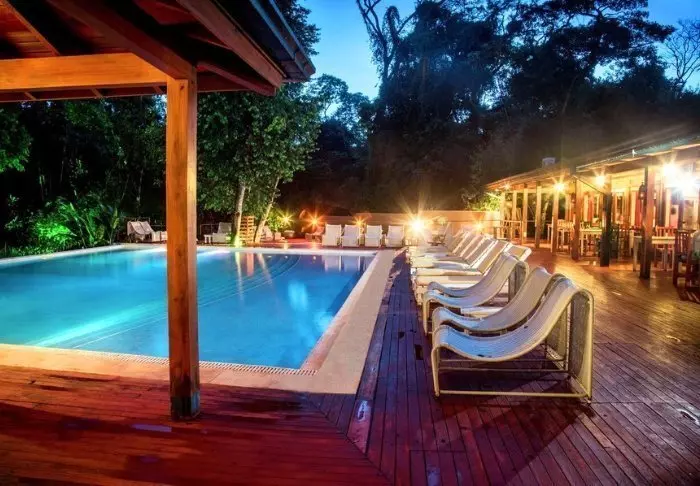 Im Garten des Hotels befindet sich ein großer Swimmingpool, in dem Sie ein erfrischendes Bad nehmen können. Oder Sie legen sich mit geschlossenen Augen an den Pool und lauschen dem Tosen der Wasserfälle – eine großartige Therapie.