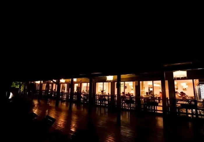 Über kleine Holzwege gelangen Sie von den Zimmern zum Pool- und Restaurantbereich. Dort können Sie sich entspannen und nach einem erlebnisreichen Tag ein erfrischendes Bad im großen Swimmingpool nehmen.
