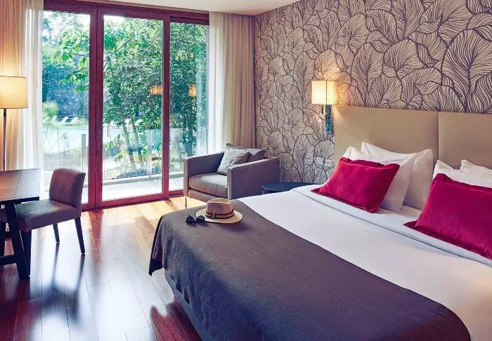 Das Hotel wurde in 2 Etagen errichtet und bietet insgesamt 100 geräumige Zimmer. Die Zimmer sind alle mit einem großen Flachbildschirm-TV-Gerät, einem Telefon, einem Safe, einer Minibar, einem Föhn, einer Klimaanlage und WLAN ausgestattet. Außerdem besitzen Sie entweder eine kleine Terrasse oder einen Balkon, wo Sie sich setzen und die herrliche Natur genießen können.