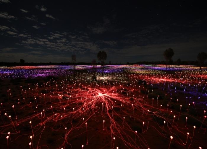Die Kunstinstallation Field of Light wurde im April 2016 in Uluru eröffnet und sollte eigentlich nur vorübergehend zu sehen sein. Die Ausstellung wurde aufgrund ihrer Beliebtheit aber immer wieder verlängert, bis man 2019 entschied, dass die Ausstellung dauerhaft zugänglich bleiben soll.