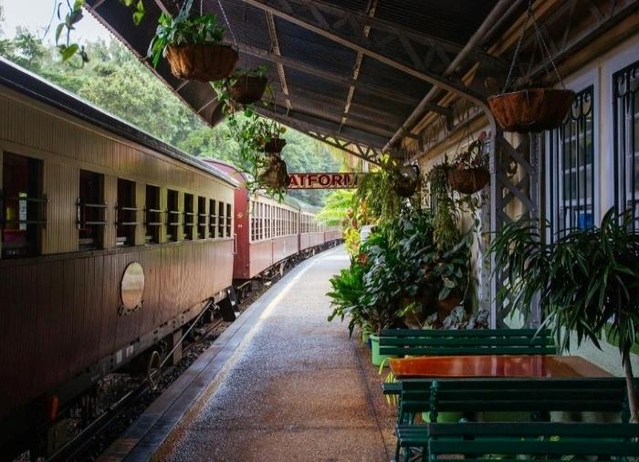 Mitten im Regenwald wurde ein Bahnhof gebaut. Dort konnten Reisende Erfrischungen kaufen und sogar in einem kleinen Hotel übernachten. Langsam wuchs die kleine Gemeinde und wurde zu einer Stadt, zu Kuranda.