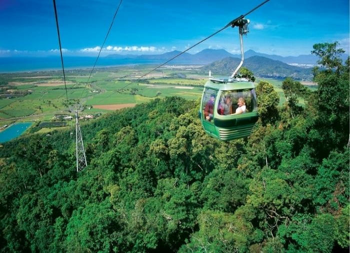 Die Fahrt zurück nach Cairns erfolgt mit dem Skyrail – einer Schwebebahn, die langsam über den Baumwipfeln wieder zurück zur Stadt gleitet.