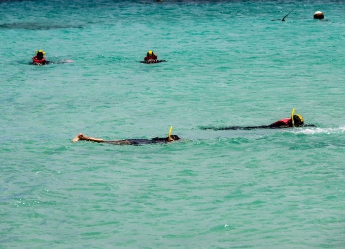 Sie können direkt vom Boot weg oder erst von der Sandbank weg schnorcheln. Den ganzen Tag über fährt ein kleines Boot eine fixe Route zwischen Katamaran und Sandbank, sodass Sie jederzeit dorthin und wieder zurück kommen können.