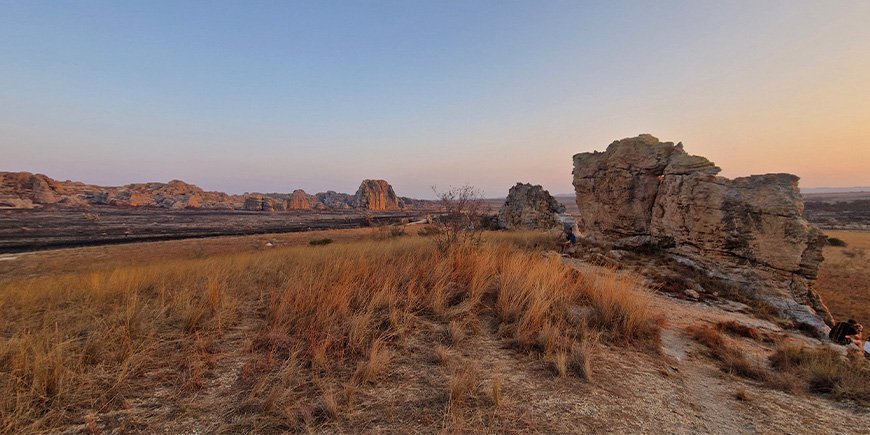 Auf einer Fläche von über 81.000 Hektar ist Isalo bekannt für seine dramatischen Sandsteinformationen, tiefen Schluchten, smaragdgrünen Seen und grasbewachsenen, savannenähnlichen Landschaften – ein starker Kontrast zu den üppigen Regenwäldern weiter östlich.