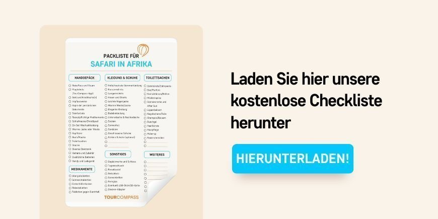 Mit diesem Guide erhalten Sie eine Empfehlung für eine Packliste, die alle Dinge enthält, die für eine Safarireise empfehlenswert sind. Dazu gehört auch die richtige Kleidung.