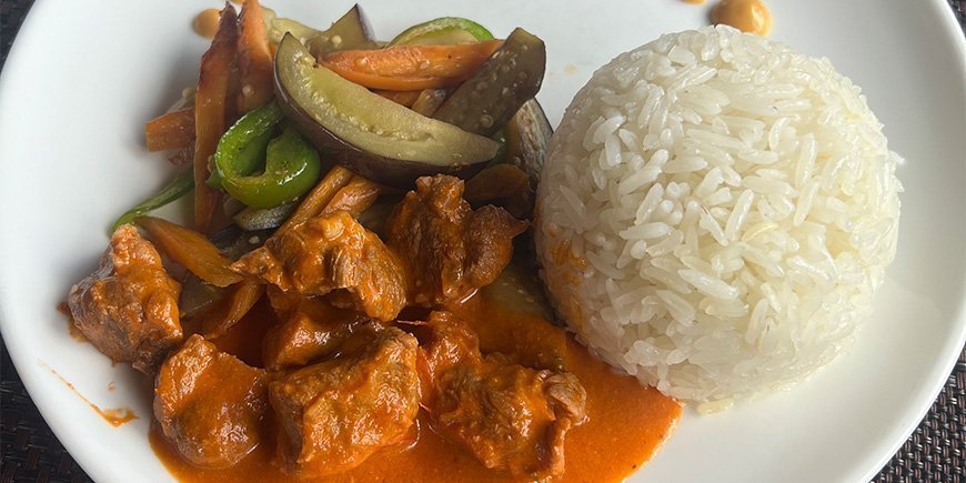 Unsere Mittagessen wurden uns meist während der Pirschfahrten serviert. Jeden Tag erhielten wir ein frisch zubereitetes, warmes Gericht, sorgfältig vom Team unserer jeweiligen Unterkunft gekocht. An manchen Tagen gab es Hühnchen mit Reis und Gemüse, an anderen bot man uns liebevoll gepackte Lunchpakete mit Salaten, Obst und Brötchen an. Ich musste mir zu keiner Zeit Sorgen um die Qualität der Speisen machen und alles schmeckte hervorragend. Unser Guide legte eine Decke auf die Motorhaube des Jeeps und wir konnten dann draußen essen, mit einem fantastischen Blick auf die Nationalparks und Schutzgebiete, die wir besuchten.