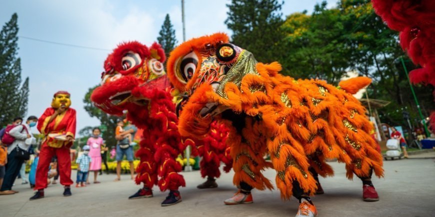 Auch außerhalb der eigenen festlich geschmückten Wände findet ein buntes Fest statt. Mua Lan – auch bekannt als Löwentanz – ist überall in den vietnamesischen Straßen zu sehen, begleitet von Trommeln, Glocken und Schießpulver. Die Schüsse werden abgefeuert, um das Böse zu vertreiben.