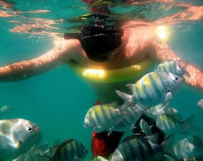 Sie können außerdem im Voraus eine Bootstour zur atemberaubenden Blauen Lagune buchen, wo Sie in kristallklarem Wasser schwimmen und mit bunten Fischen schnorcheln können.