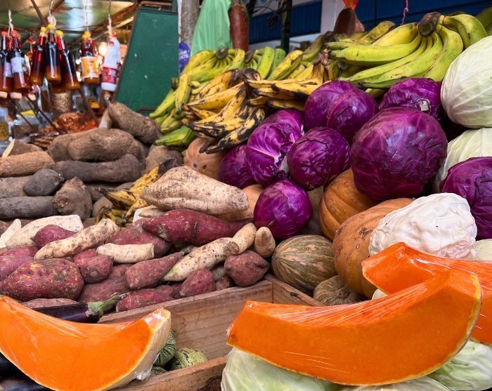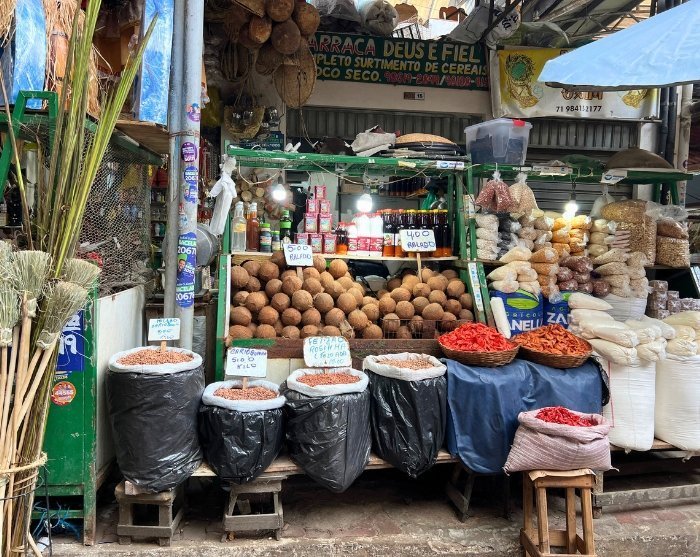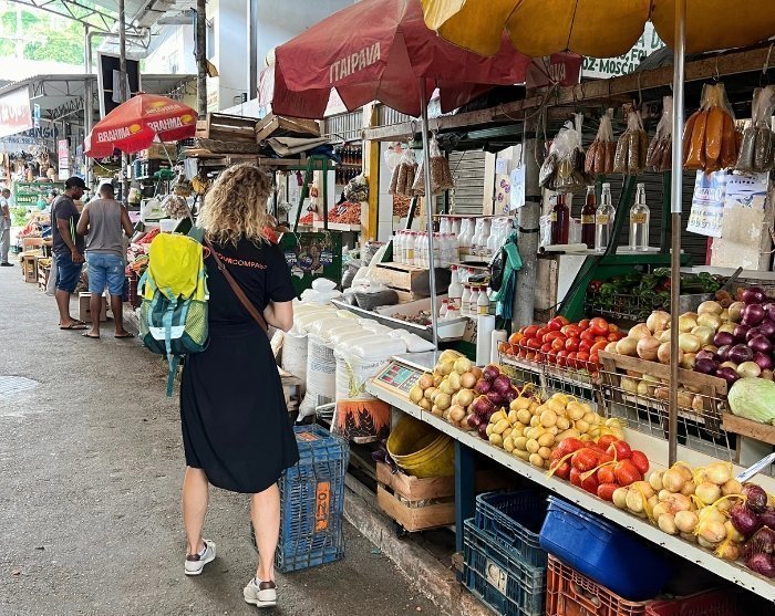 Danach geht es weiter zum lokalen Markt, um Zutaten für den Kochtag zu kaufen. Sie lernen, wie man ‘moqueca’, einen regionalen Fisch- und Meeresfrüchteeintopf, sowie ein typisches Dessert zubereitet.