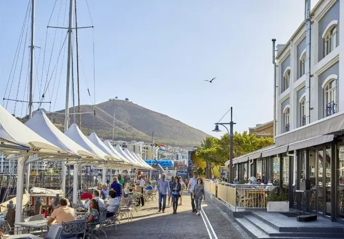 Der Wellnessbereich und der Swimmingpool liegen auf einer eigenen Insel im Hafen und sind beinahe von einem tropischen Garten eingeschlossen – mitten in der Stadt. In der Lounge können Sie einen Cocktail und das Panorama auf den Tafelberg genießen, während Sie auf Ihren Tisch im einzigen Nobu-Restaurant Afrikas warten. Es ist sehr beliebt, buchen Sie daher rechtzeitig einen Tisch.