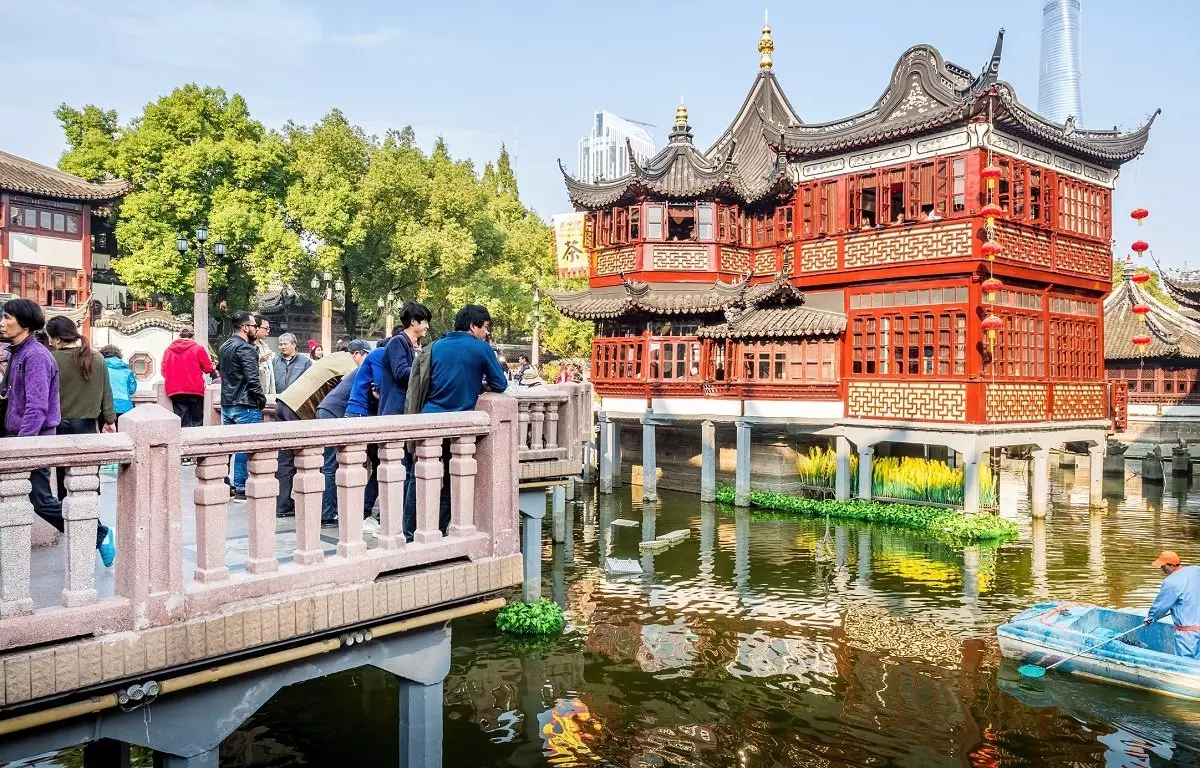 Von der Shanghai Old Street geht es weiter zur Jiuqu-Brücke zum Teehaus mit 9 Biegungen, die sich über einen kleinen See mit Karpfen windet. Hier befindet sich das älteste Teehaus Shanghais aus dem Jahre 1855, Huxinting. Die Jiuqu-Brücke führt Sie weiter zum Garten Yuyuan, dem edelsten Garten Shanghais.