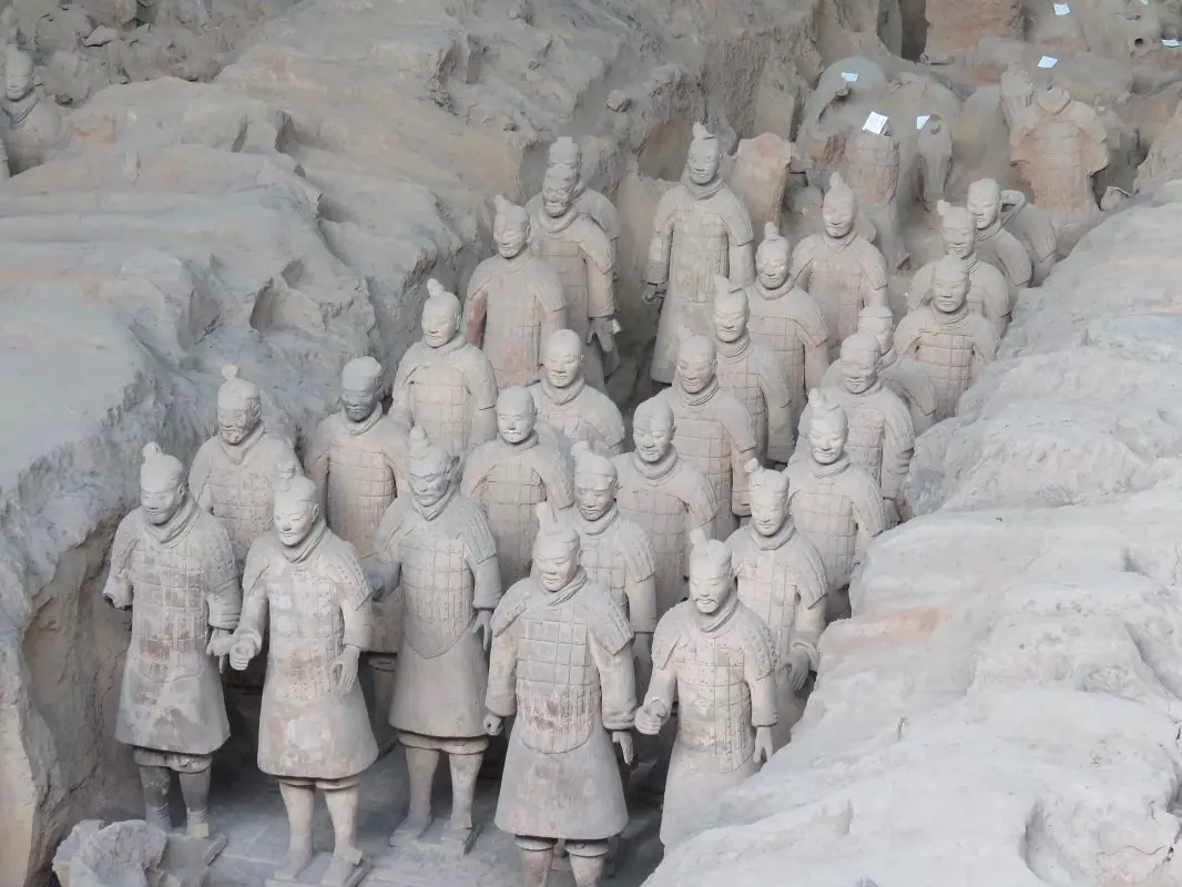 Im Jahr 1974 fanden Bauern 45 km von Xi’an entfernt Fragmente einer Skulptur in Lebensgröße. Es wurden Archäologen verständigt, welche die Ausgrabung fortsetzten. Das Ergebnis war der größte Fund der Welt von Skulpturen unter der Erde. Über 7.000 Terrakottakrieger, Pferde und Wägen wurden entdeckt. Die Krieger sind zwischen 175 cm und 190 cm groß und haben alle verschiedene Gesichtszüge, Frisuren und Kleidung. Sie stehen alle in der Nähe der Grabstätte des Kaisers Qin Shi Huang alle in einer Reihe da, bereit zum Kampf. Es wird nämlich erzählt, dass die Krieger geformt wurden, um ihren Herrscher im Leben nach dem Tod zu beschützen.