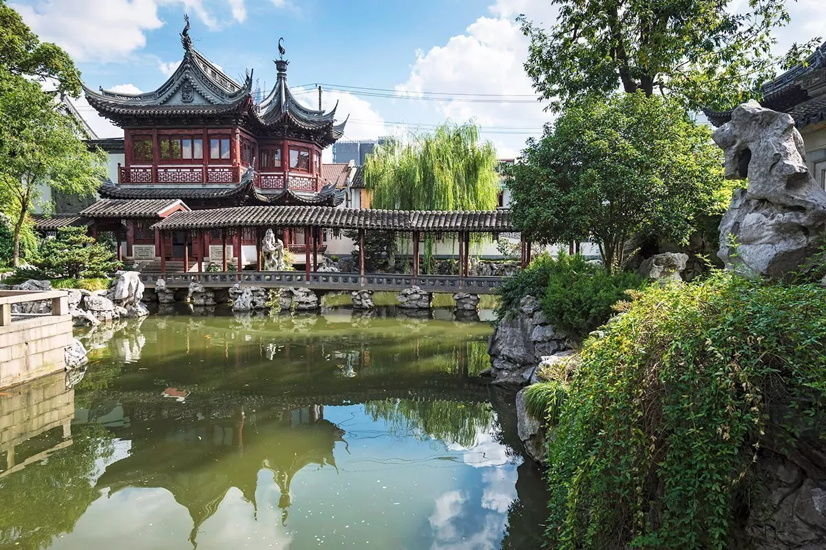 Der Garten Yuyuan wurde während der Ming-Dynastie vom Beamten Pan Yunduan als Erholungsort für seine Eltern angelegt. Yu bedeutet Frieden und Wohlbefinden auf Chinesisch, und genau das strahlt der Garten aus. Yuyuan ist das beste Beispiel für chinesische Gartenkunst, eine Oase mitten in einer pulsierenden Großstadt, mit Pavillons, kleinen Teichen voller Karpfen, Steinbrücken und Wasserläufen. Eine schützende Drachenmauer um den Garten schießt den Lärm vom belebten Old Town in Shanghai aus.