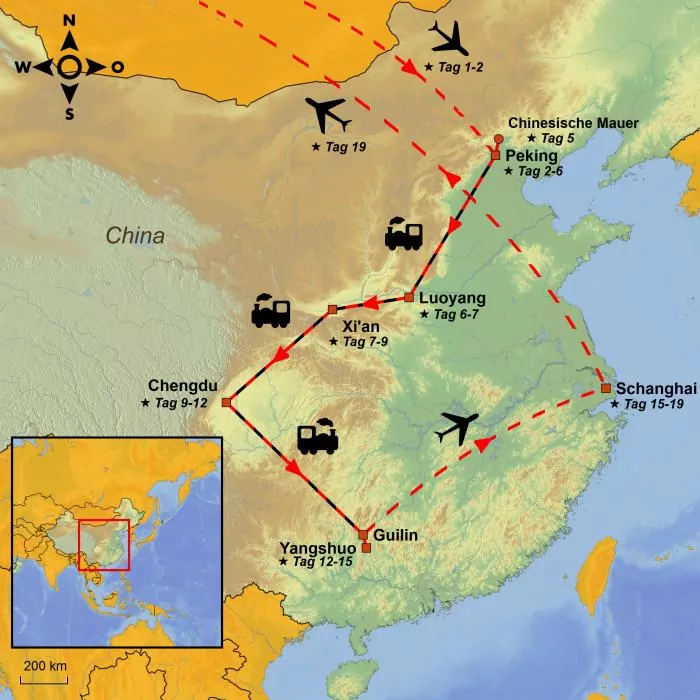 Heute ist es an der Zeit, sich von China zu verabschieden. Sie werden von einem Chauffeur vom Hotel abgeholt und zum Flughafen gebracht, von wo aus die Heimreise beginnt.