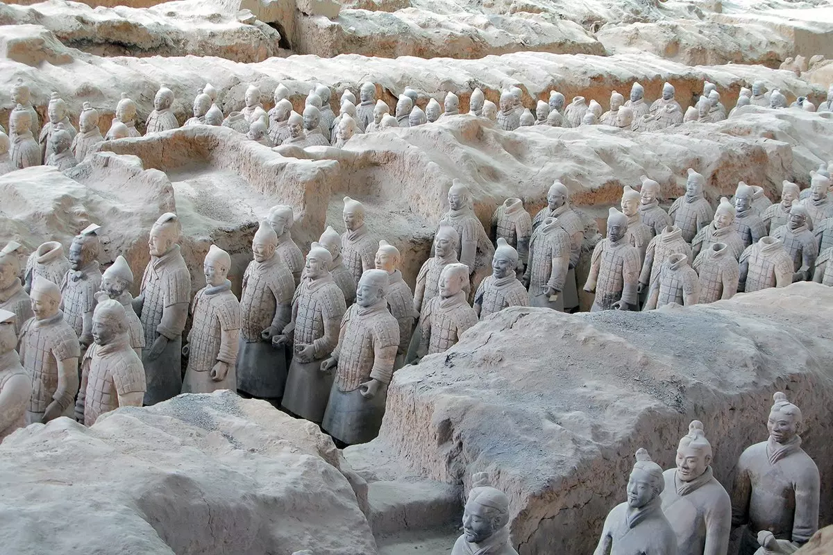 Einheimische Bauern fanden bei ihrer täglichen Arbeit auf dem Feld 1974 Fragmente einer Skulptur in Lebensgröße. Archäologen setzten die Ausgrabung fort. Das Ergebnis war der größte Fund der Welt von Skulpturen unter der Erde. Sie entdeckten bei der Ausgrabung über 7.000 Terrakottakrieger, Pferde und Wägen. Die Krieger sind zwischen 175 und 190 cm hoch und alle unterschiedlich geformt. Alle haben unterschiedliche Kleidung, Frisuren und Gesichtszüge. Die Krieger stehen alle in der Nähe der Grabstätte des Kaisers Qin Shi Huang in einer Reihe da. Es wird nämlich erzählt, dass die Krieger geformt wurden, um ihren Herrscher im Leben nach dem Tod zu beschützen.