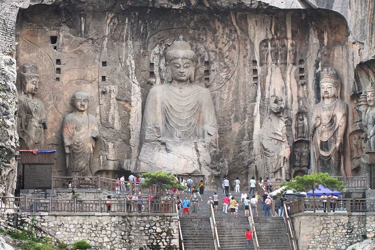 Die nördliche Wei-Dynastie begann diese Höhlenkunst, die weiter gepflegt wurde, bis ins Jahr 900, als die Tang-Dynastie an der Macht war. In dieser langen Zeit wurden bis zu 100.000 Buddha-Figuren, Bodhisattvas, Lotusblüten und andere Figuren in den rund 2.345 Grotten am Ufer des Flusses geschnitzt. Nicht grundlos gehören diese heute zum UNESCO-Weltkulturerbe. Die mehr als 1.000 Jahre haben Spuren an den Figuren hinterlassen, aber viele sind noch sehr gut erhalten.
