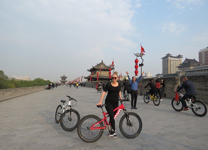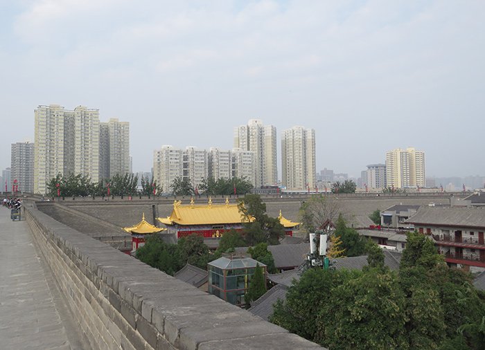 Die Stadtmauer von Xi’an ist der ganze Stolz der Stadt. In China wurden so gut wie alle Stadtmauern abgerissen. In Xi’an hingegen konnte diese bewahrt werden, indem die Mauern restauriert und die Wallgräben gereinigt wurden. Die Einheimischen nutzen die Mauer häufig für Spaziergänge oder Läufe nach der Arbeit oder Schule, während Touristen mit dem Fahrrad auf der Mauer fahren.