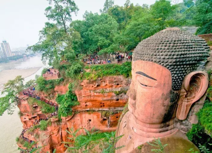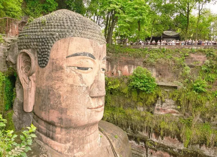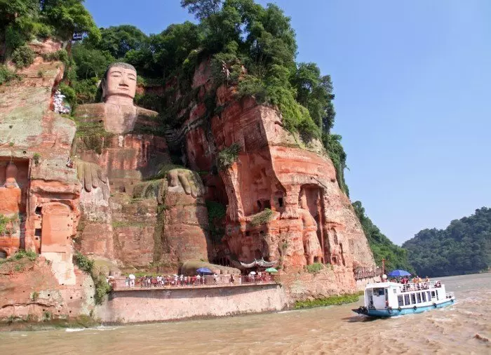 Der Große Buddha von Leshan wurde aus einem roten Sandsteinfelsen gehauen, der dort steht, wo die Flüsse Dadu, Minjiang und Qingyi zusammenfließen. Laut einer chinesischen Sage verschwanden viele Schiffe spurlos in den Strudeln am Zusammenfluss der Flüsse, die Strömung war hier sehr stark. Ein Mönch mit dem Namen Hai Tong schlug daher vor, einen riesigen sitzenden Buddha zu errichten, welcher über die Schiffe wachen und die bösen Flussgötter beruhigen sollte. Jahrelang bat er um Mittel, um das Projekt beginnen zu können. Es begann schließlich während der Tang-Dynastie im Jahr 713. Leider verstarb der Mönch, als das Projekt erst zur Hälfte fertig war. Nach seinem Tod stoppte man das Projekt aufgrund der fehlenden Finanzierung vorläufig. Erst 70 Jahre späte beschloss der regionale Gouverneur Wei Gao, das Projekt zu finanzieren. Die Statue wurde im Jahr 803 fertiggestellt.