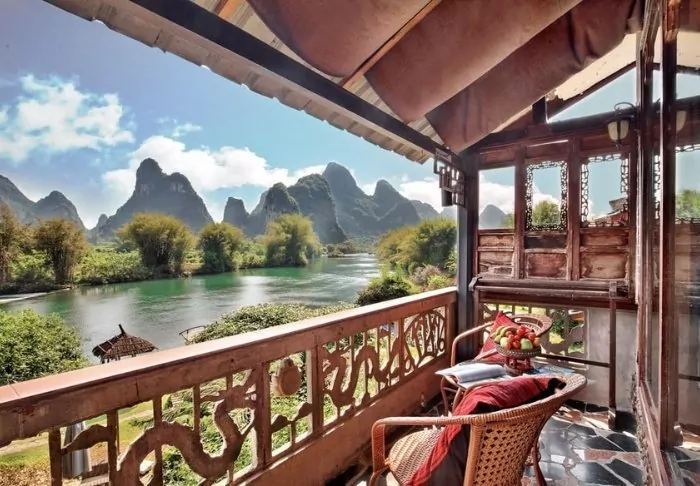 Etwas außerhalb von Yangshuo befindet sich das friedliche Yangshuo Mountain Retreat in einer herrlichen Umgebung mit grünen Bäumen und Kalksteinbergen, am Ufer des Flusses Yulong. Hier können Sie Ihre innere Ruhe wiederfinden, während Sie die prachtvolle Natur wie ein Schwamm aufsaugen.