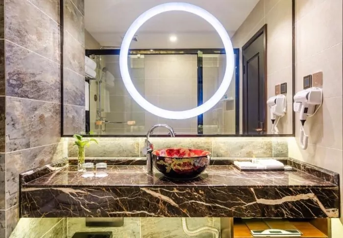 Das Hotel bietet insgesamt 142 elegant eingerichtete Zimmer mit Möbeln aus edlem dunklem Holz sowie mit dekorativen Teppichen und Gemälden. Alle Zimmer verfügen über WLAN, ein TV-Gerät, eine Klimaanlage, ein Telefon, einen Kühlschrank und einen Safe. Darüber hinaus steht ein eigenes Badezimmer mit Föhn und Toilettenartikeln zur Verfügung.