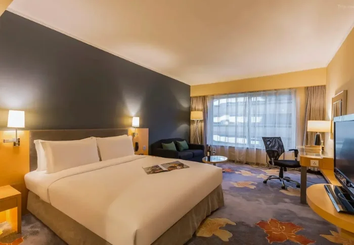 Sie übernachten in einem 32 m² großen Standardzimmer mit Blick auf die Stadt. Das Zimmer ist mit Klimaanlage, Flachbildfernseher, Safe, Minibar, elektrischem Wasserkocher und WLAN ausgestattet. Während Ihres gesamten Aufenthalts steht Ihnen kostenloses Mineralwasser zur Verfügung. Ihr Zimmer verfügt wahlweise über ein Doppelbett oder zwei Einzelbetten sowie über ein Sofa und einen Schreibtisch – so haben Sie ausreichend Platz, um sich nach einem erlebnisreichen Tag zu entspannen. Das Bad ist mit einer Dusche ausgestattet und bietet Pflegeprodukte, einen Bademantel, Hausschuhe sowie einen Föhn.