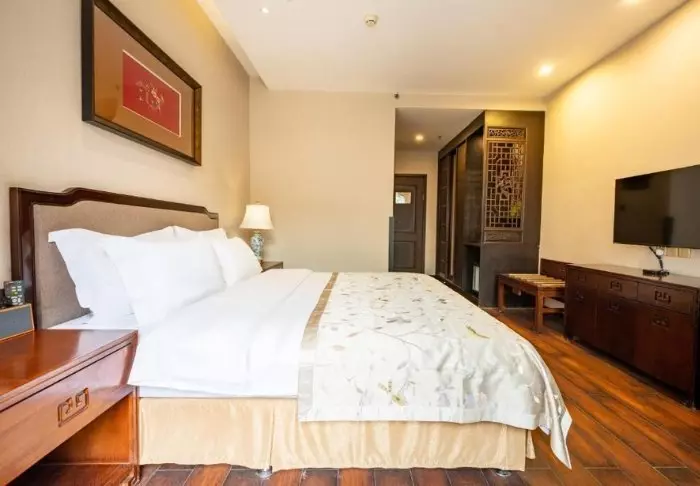 Die Zimmer sind elegant im chinesischen Stil mit Holzmöbeln und hübschen Details eingerichtet. Sie sind alle mit modernen Einrichtungen wie Klimaanlage, WLAN, Safe, Möglichkeiten zum Tee- und Kaffeekochen und einem Flachbild-TV ausgestattet. Die Badezimmer sind modern und frisch renoviert. Hier finden Sie Bademäntel, Hausschuhe, Haartrockner und Pflegeprodukte.