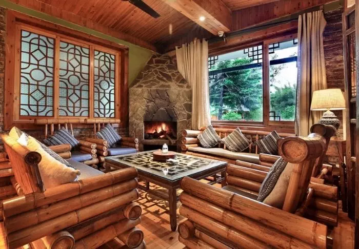 In der Bamboo Bar des Hotels können Sie sich im Loungebereich in eines der eleganten Bambussofas setzen, ein Brettspiel spielen, ein Buch lesen oder Entspannungsmusik hören, während Sie eines der vielen verschiedenen Getränke der Bar schlürfen. Im Sommer können Sie sich mit der Klimaanlage der Bar abkühlen, im Winter wärmen Sie die Flammen des Kamins.