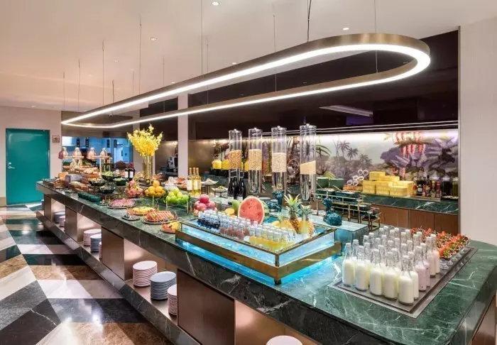 Das Frühstücksrestaurant des Hotels erwartet Sie mit einer großen Auswahl an westlichen und chinesischen Gerichten im großen Frühstücksbuffet.
