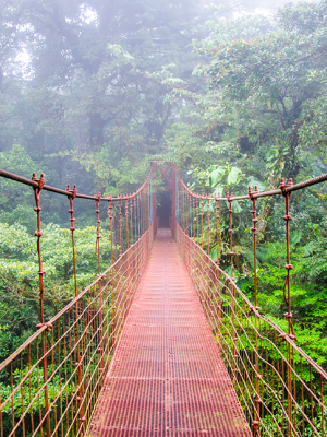 In Monteverde können Sie den mystischen Nebelregenwald bei einem adrenalingeladenen Spaziergang über Hängebrücken, die zwischen den Baumkronen gespannt sind, erleben.