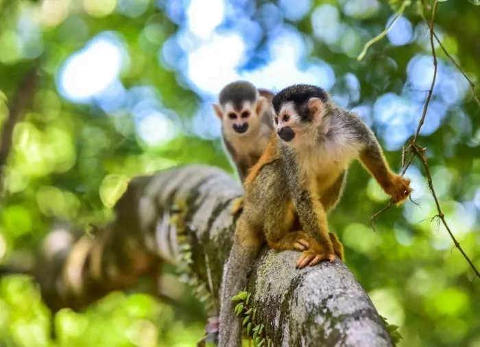 Manuel Antonio liegt im Westen von Costa Rica am Stillen Ozean und ist besonders berühmt für den gleichnamigen Nationalpark. Der Nationalpark gehört zu den kleinsten von Costa Rica, aber er ist der bekannteste und beliebteste der 27 Nationalparks des Landes. Der Park wurde außerdem zu einem der schönsten Nationalparks der Welt ernannt, da er aus grünem blühendem Regenwald besteht, der sich bis an die wunderschönen weißen Sandstrände und das türkisblaue Meer erstreckt, was dem Park atemberaubende Schönheit verleiht. Der Nationalpark Manuel Antonio ist außerdem das Zuhause von unzähligen verschiedenen Tierarten und einer der artenreichsten Nationalparks der Welt. Hier können Sie mit ein wenig Glück Totenkopfaffen, weißköpfige Kapuzineraffen, Mantelbrüllaffen, Klammeraffen, Faultiere, Nasenbären mit weißen Nasen, Leguane, rotäugige Laubfrösche, Tukane, Kolibris und bunte Schmetterlinge beobachten.