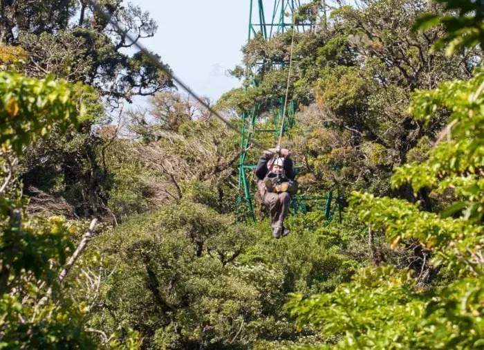 Es erwartet Sie eine aufregende, ca. 2,5 Kilometer lange Wanderung in den Baumwipfeln! Während Sie auf Hängebrücken zwischen den Baumwipfeln gehen, werden Sie die ganz besondere mystische Atmosphäre spüren, welche durch den Nebel in dieser magischen Landschaft entsteht. Sie sind umgeben von Orchideen, Farnen, Moos, riesigen Bäumen und unzähligen Pflanzenarten, die an den Stämmen der Bäume wachsen. In den Baumkronen dieses Zauberwaldes zwitschern bunte Vögel wie der Gelbscheitel-Organist, der Schillerglanzstar, der Quetzal und mehr als 400 weitere Vogelarten. Der Wald ist somit ein wahres Paradies für Vogelliebhaber.