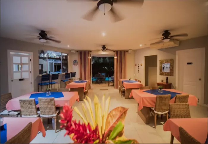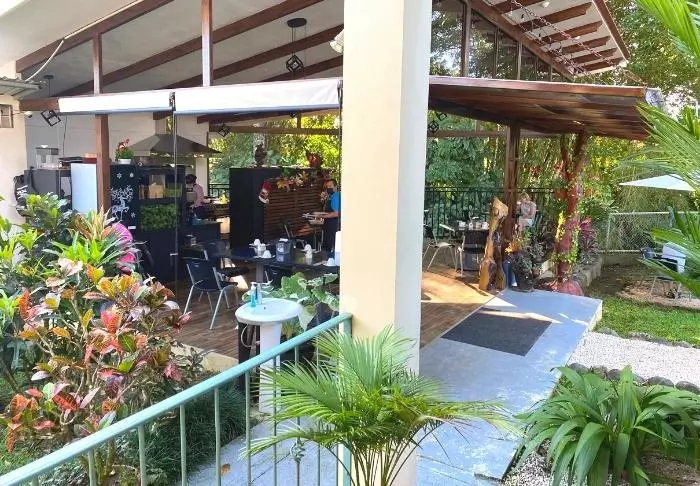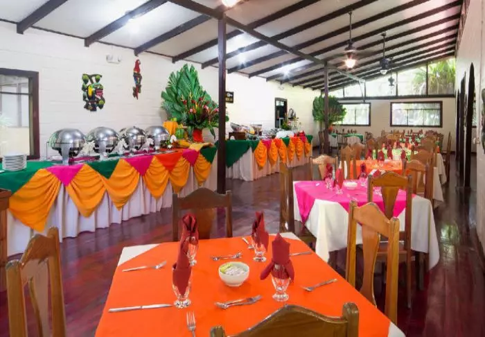 Das Hotel ist ans Restaurant Mama Gui angebaut. Das im Preis enthaltene Frühstück wird dort serviert. Das Restaurant ist außerdem für Mittagessen und Abendessen geöffnet. Sie können eine interessante Mischung aus italienischer und costa-ricanischer Küche genießen.