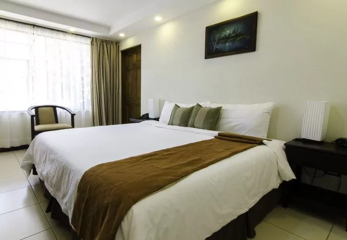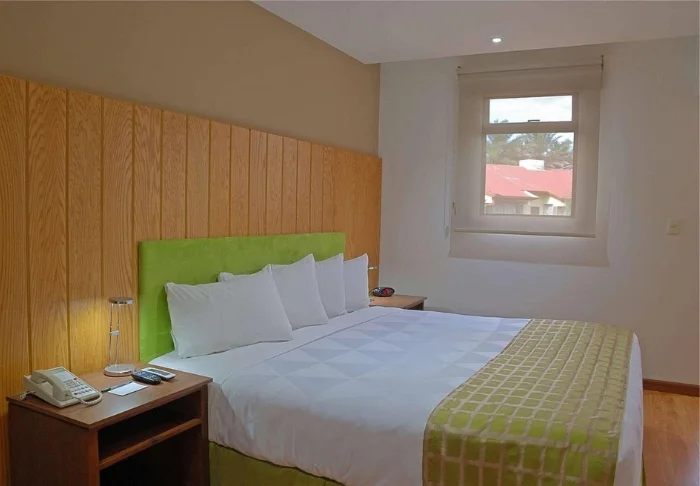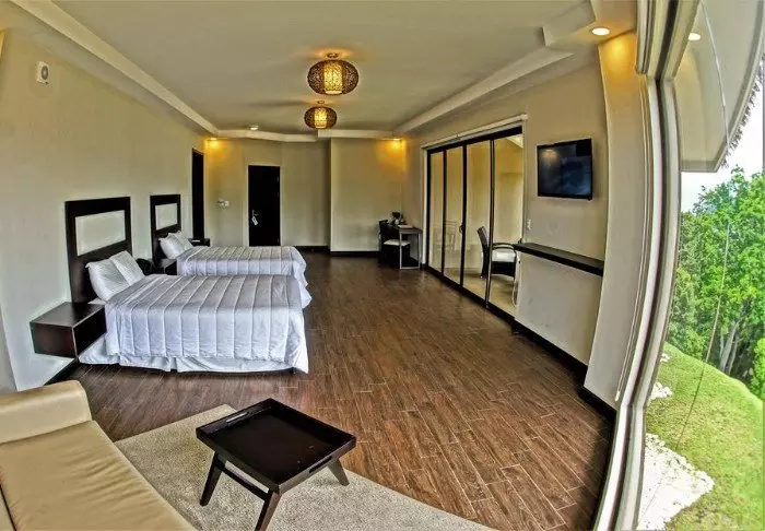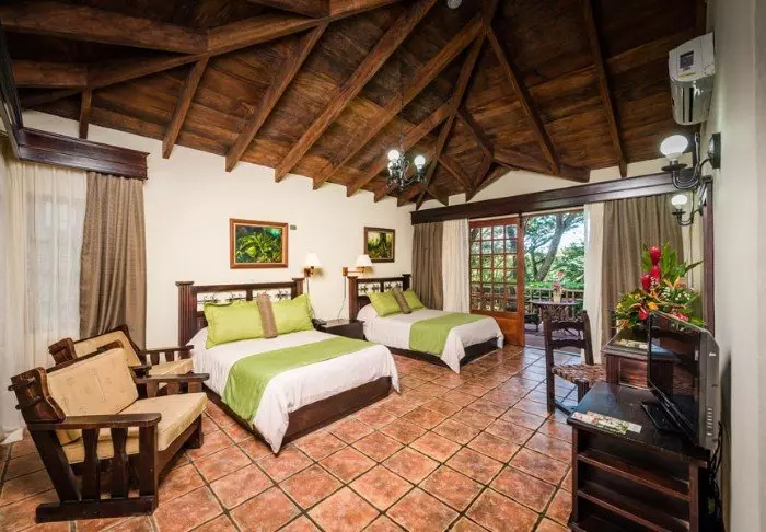 Es gibt dort einen mit natürlichem Quellwasser gespeisten Swimmingpool. Die 54 Zimmer haben kleine Balkone, von denen man die Aussicht auf die Vulkane und Haciendas genießen kann, und sind mit Klimaanlage, Safe und Fernseher ausgestattet.
