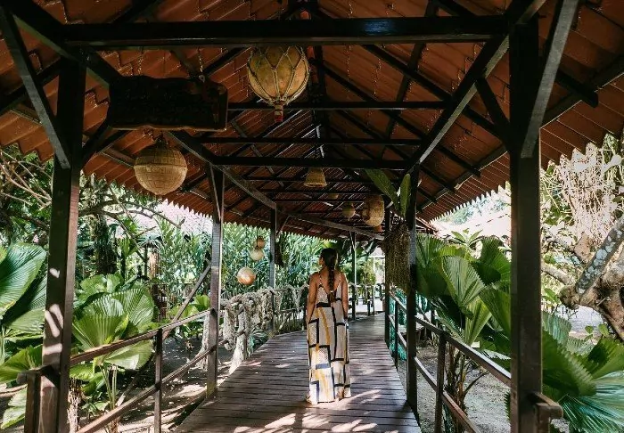 Hinter hohen Palmen und tropischen Pflanzen versteckt sich eine wahre Perle, das Hideaway Hotel.