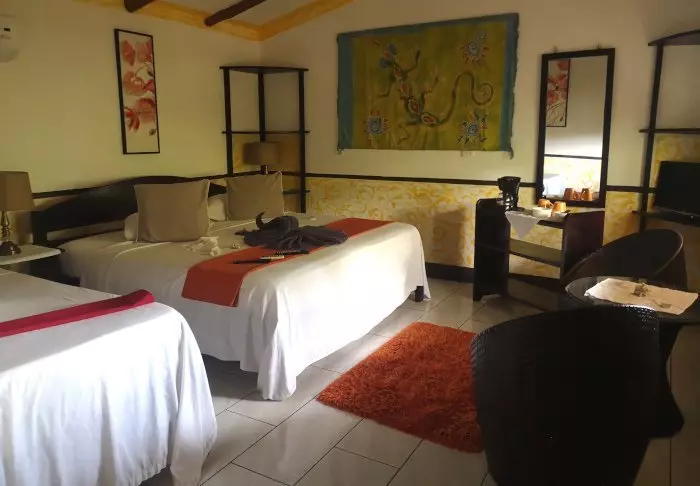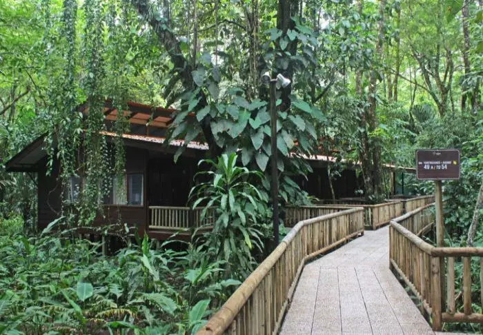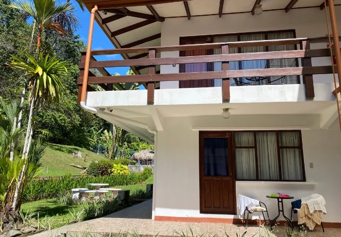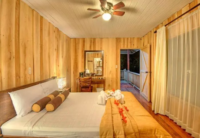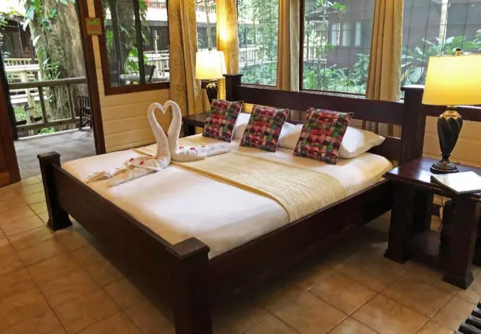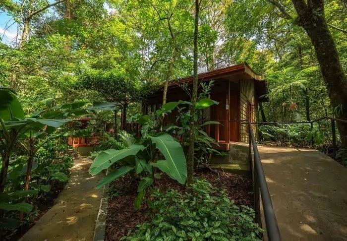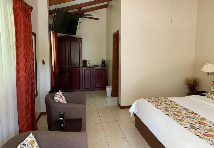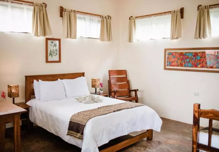 Die Zimmer des Hotels bestehen hauptsächlich aus Holzelementen und sind in natürlichen Farben mit Grüntönen eingerichtet. Alle Zimmer sind mit Klimaanlage, Kabelfernsehen und Minikühlschrank sowie mit einem eigenen Badezimmer mit Föhn ausgestattet. Darüber hinaus gehört zu jedem Zimmer eine eigene kleine überdachte Veranda mit Stühlen. Dort können Sie sich entspannen und die grüne Umgebung genießen. Vielleicht sehen Sie sogar einen bunten Schmetterling oder Kolibri.