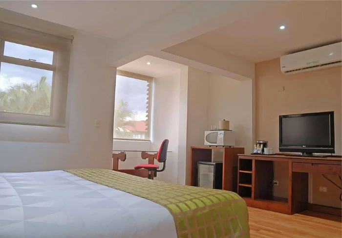 Die Zimmer sind modern, in hellen Farben mit Fliesen am Boden und Gemälden an der Wand, eingerichtet. Alle Zimmer sind mit Klimaanlage, Deckenventilator, Flachbildschirm-TV-Gerät, Safe und einem eigenen Badezimmer mit Föhn und ausgestattet. Es gibt im ganzen Hotel gratis WLAN.