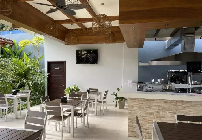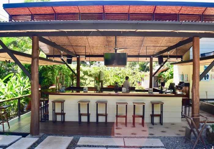 In der malerischen strohbedeckten Restaurant-Bar werden ein tropisches Frühstück, erfrischende Getränke und Gerichte aus der argentinischen Küche kombiniert mit costa-ricanischen Zutaten und Gourmeterlebnissen serviert.