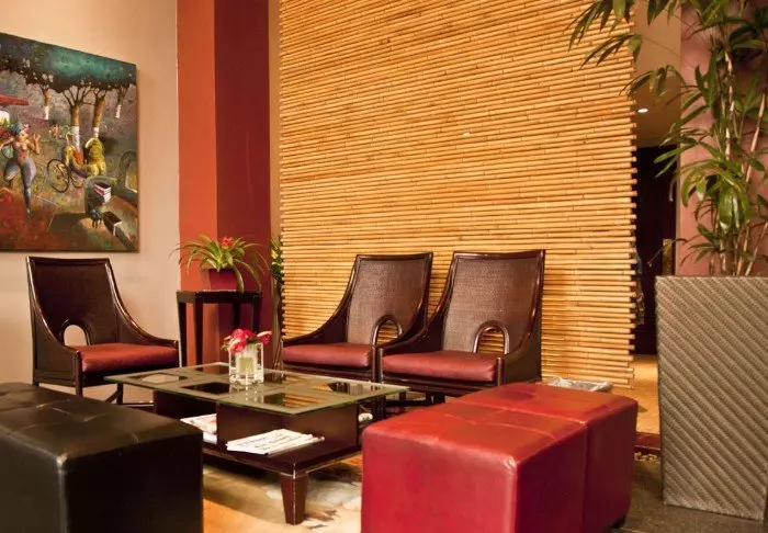 Das Hotel besteht aus strohgedeckten Bungalows in Erdfarben, in denen sich 63 geräumige Zimmer befinden. Alle Zimmer sind mit gemütlichen Betten, einem Sofa, einem Schreibtisch, einer Minibar bzw. einem Kühlschrank, einem Safe, einer Klimaanlage, einem Flachbildschirm-TV-Gerät, einem Telefon, einer Kaffeemaschine und einem eigenen Badezimmer mit Föhn ausgestattet. Darüber hinaus gehört zu jedem Zimmer ein Balkon oder einer Terrasse. Dort können Sie sich hinsetzen und entspannen, während Sie die wunderschöne Umgebung bewundern.