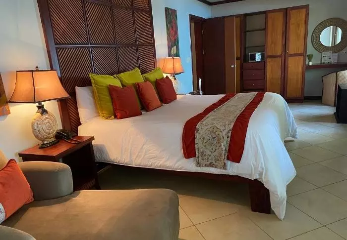 Das Hotel bietet lediglich 32 Zimmer, die eine Aussicht auf den tropischen Garten oder das verführerische Meer haben. Die Zimmer sind geräumig und schön eingerichtet. Sie alle sind mit Klimaanlage, Kühlschrank, Kabelfernsehen, Kaffeemaschine, Safe, WLAN, Föhn und Toilettenartikeln ausgestattet.