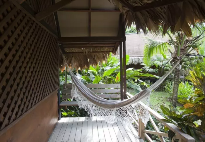 Die 8 schönen Bungalows liegen auf einer kleinen Anhöhe mitten in der hügeligen Landschaft um das Hotel. In jedem haben bis zu 4 Personen Platz. Alle sind mit Deckenventilator, Safe, Moskitonetz über den Betten und einem eigenen Badezimmer mit Föhn und Toilettenartikeln ausgestattet. Zu jedem Bungalow gehört außerdem ein Veranda mit Hängematten, in denen Sie sich nach einem erlebnisreichen Tag entspannen und die schöne Natur der Umgebung genießen können. Mit etwas Glück sehen Sie sogar Papageien, Tukane, Kolibris und andere exotische Vögel vorbeifliegen.