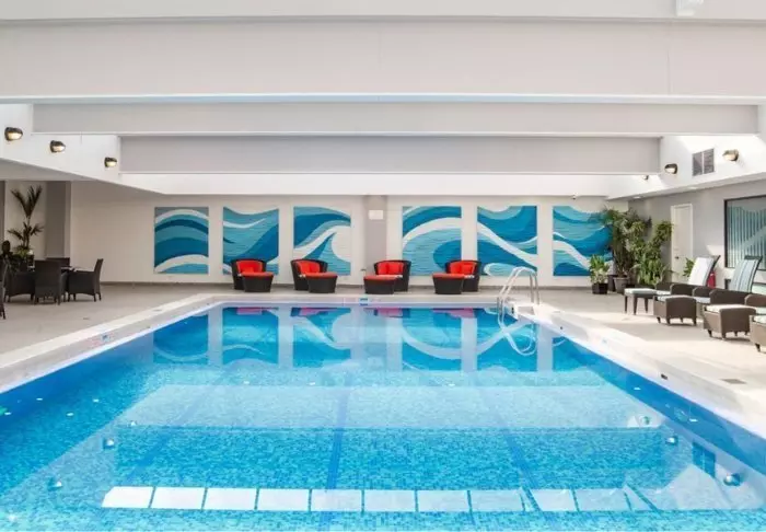Im Hotel gibt es einen Innenpool, in dem Sie baden können. Sie können sich aber auch einfach in den Loungestühlen hier entspannen. Am Swimmingpool können ebenfalls Gerichte und Getränke bestellt werden. Zur Ausstattung gehört weiters ein Fitnesscenter mit einer erlesenen Auswahl an Trainingsgeräten.