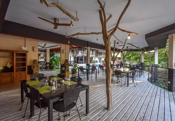 Sie werden in entspannter Atmosphäre willkommen geheißen und spüren sofort die Harmonie mit der Natur. Das Hotel ist von grünem Regenwald umgeben und bietet einen gemütlichen Pool-Bereich. Dort können Sie ein erfrischendes Bad nehmen oder auf einer Sonnenliege umgeben von Palmen und exotischen Blumen ein kühles Getränk genießen. Lediglich 17 Zimmer stehen in diesem kleinen Hotel zur Verfügung. Sie alle sind mit Klimaanlage, Deckenventilator, Minibar, Safe, Föhn, TV-Gerät, Kaffee-/Tee-Ecke und einem eigenen Badezimmer ausgestattet.