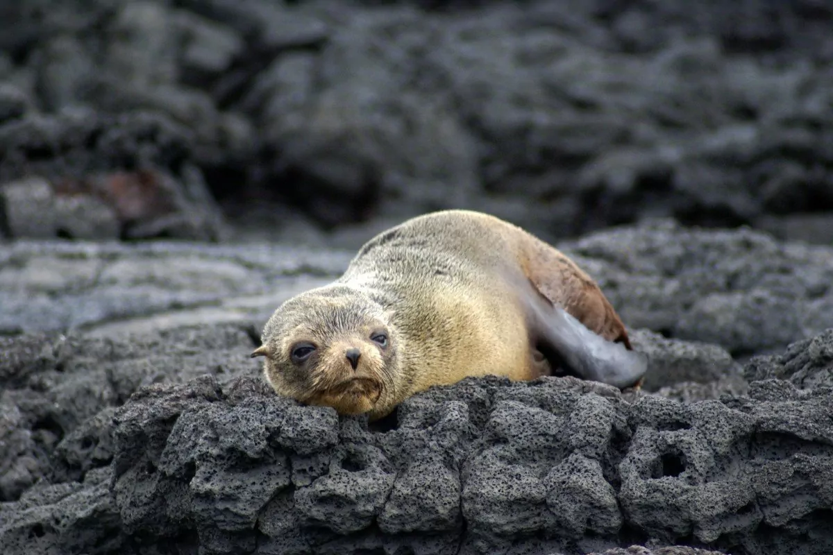 Auf der Insel findet man außerdem unzählige Meerechsen und Seelöwen. Hier ist einer der wenigen Orte, wo man den Galápagos-Seebären beobachten kann.