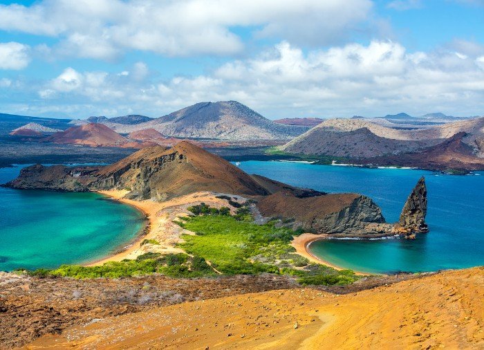 Bartolomé ist eine der schönsten Galapagos-Inseln. Sie ist besonders berühmt für ihre beeindruckende Landschaft mit roten, orangen, grünen und schwarzen Farben und dem spitzen, durch vulkanische Aktivität geschaffenen Felsen Pinnacle Rock.