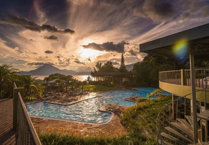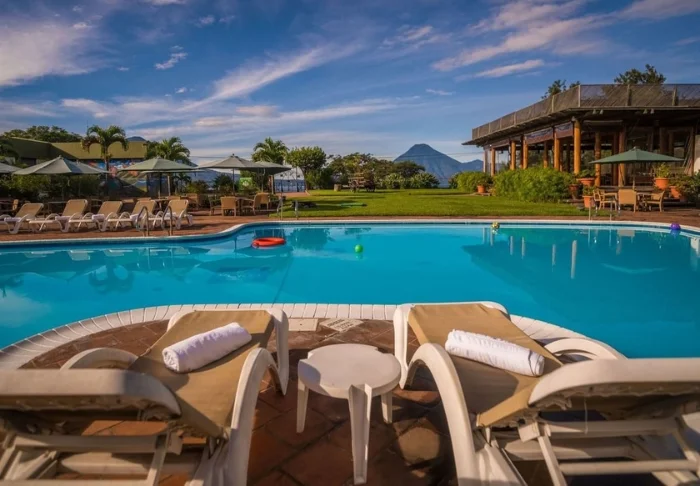 Nach einem Tag voller Erlebnisse können Sie im Pool baden oder auf einem Liegestuhl im Garten ein exotisches Getränk genießen. Nur wenige hundert Meter vom Hotel entfernt liegt der See Atitlán, an dem Sie ein atemberaubendes Panorama über das Wasser – mit den majestätischen Vulkanen am Horizont – bestaunen können.
