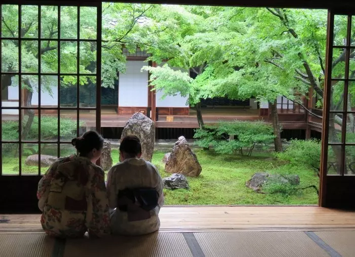 Danach besuchen Sie den Tempel Kennin-ji, den ältesten Zen-Tempel Kiotos aus dem Jahr 1202. Besonders bekannt ist der Tempel für seine wunderschönen Zen-Gärten und die beeindruckenden Fujin-Raijin-zu-Gemälde, die den Wind- und den Donnergott zeigen. Ein Nationalschatz, der von Tawaraya Sotatsu angefertigt wurde.