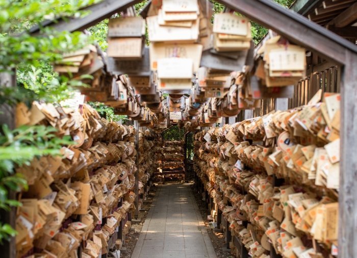 Danach besuchen Sie das Hikawa-Heiligtum, das im Jahr 541 errichtet wurde. Das Heiligtum ist fünf Göttern gewidmet, von denen zwei ein Paar waren. Hikawa ist daher bei jungen Japanern, Liebespaaren und Eheleuten sehr beliebt. Sie kommen hierher und bitten um Liebe für ihre Beziehung und Ehe. Schreiten Sie durch die 15 Meter hohe Torii-Pforte des Heiligtums und durch den Korridor, in dem kleine Holzplatten mit dem Namen Ema hängen. Auf diesen schreiben Besucher ihre Wünsche auf. Im Sommer können Sie ihnen lauschen, denn sie klingen wie ein sanftes Windspiel.