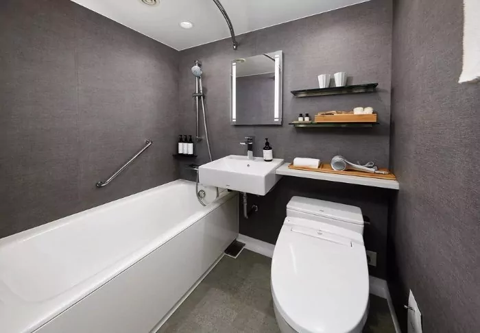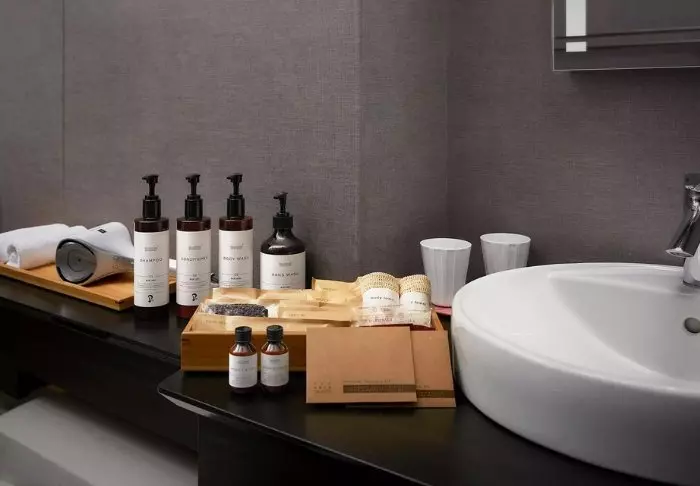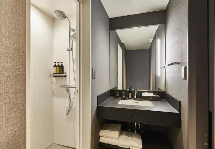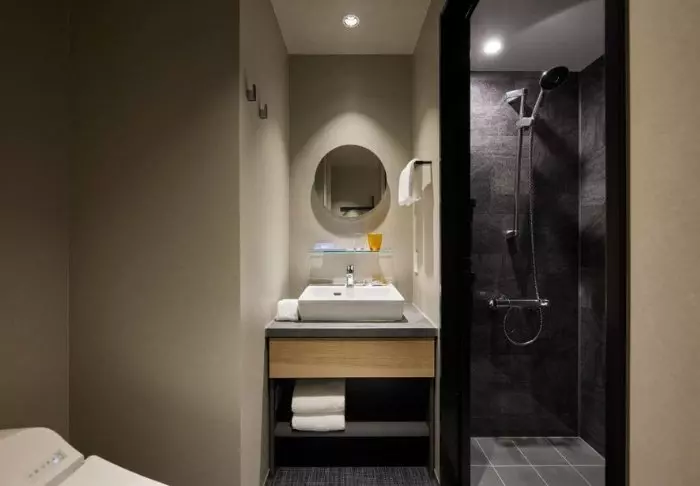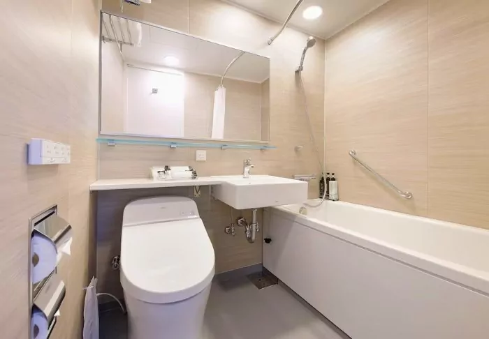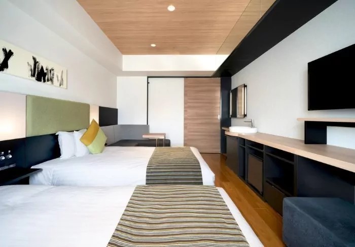 Das Hotel besticht durch ein modernes und stilvolles Design mit warmen Farbtönen und japanischem Minimalismus. Die Standardzimmer sind durchdacht mit allem ausgestattet, was Sie nach einem erlebnisreichen Tag benötigen, einschließlich WLAN, Klimaanlage, Kühlschrank, Fernseher und einem Wasserkocher, um Ihren Morgen mit einer Tasse grünem Tee oder Kaffee zu beginnen. Das funktionale Badezimmer ist mit Toilettenartikeln und einer Badewanne ausgestattet, in der Sie nach einem anstrengenden Tag entspannen können.